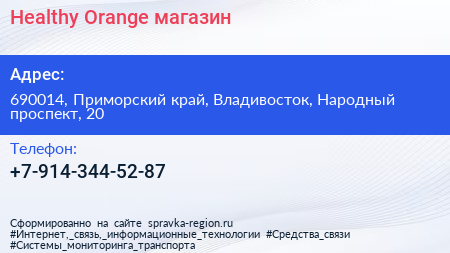 Healthy Orange, магазин по адресу 690014, Приморский край, Владивосток, Народный проспект, 20 в дальнейшем Организация, размещена в следующих категориях: