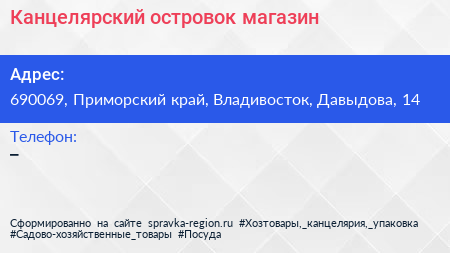 Канцелярский островок, магазин по адресу 690069, Приморский край, Владивосток, Давыдова, 14 в дальнейшем Организация, размещена в следующих категориях: