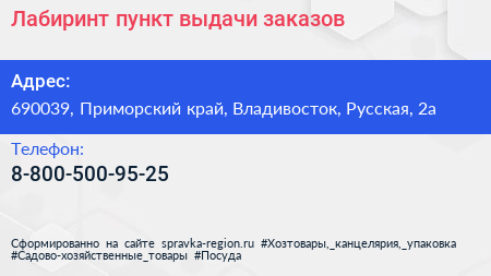 Лабиринт, пункт выдачи заказов по адресу 690039, Приморский край, Владивосток, Русская, 2а в дальнейшем Организация, размещена в следующих категориях: