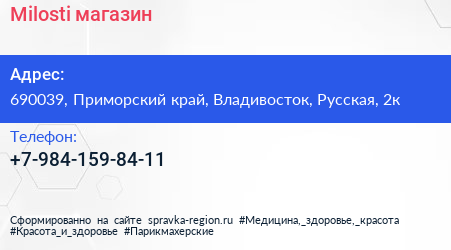 Milosti, магазин по адресу 690039, Приморский край, Владивосток, Русская, 2к в дальнейшем Организация, размещена в следующих категориях: