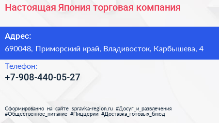 Настоящая Япония, торговая компания по адресу 690048, Приморский край, Владивосток, Карбышева, 4 в дальнейшем Организация, размещена в следующих категориях: