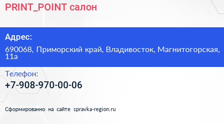 PRINT_POINT, салон по адресу 690068, Приморский край, Владивосток, Магнитогорская, 11а в дальнейшем Организация, размещена в следующих категориях: