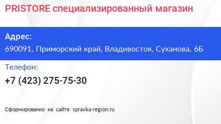 PRISTORE, специализированный магазин по адресу 690091, Приморский край, Владивосток, Суханова, 6Б в дальнейшем Организация, размещена в следующих категориях: