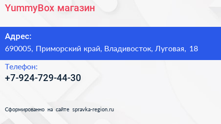 YummyBox, магазин по адресу 690005, Приморский край, Владивосток, Луговая, 18 в дальнейшем Организация, размещена в следующих категориях: