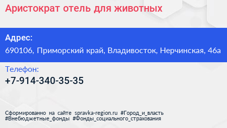 Аристократ, отель для животных по адресу 690106, Приморский край, Владивосток, Нерчинская, 46а в дальнейшем Организация, размещена в следующих категориях:
