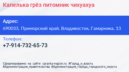 Капелька грёз, питомник чихуахуа по адресу 690033, Приморский край, Владивосток, Гамарника, 13 в дальнейшем Организация, размещена в следующих категориях:
