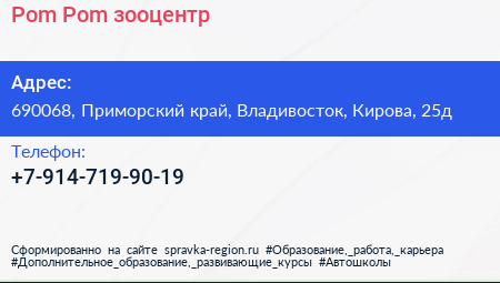 Pom-Pom, зооцентр по адресу 690068, Приморский край, Владивосток, Кирова, 25д в дальнейшем Организация, размещена в следующих категориях: