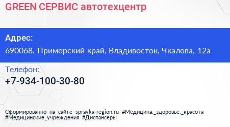 GREEN СЕРВИС, автотехцентр по адресу 690068, Приморский край, Владивосток, Чкалова, 12а в дальнейшем Организация, размещена в следующих категориях: