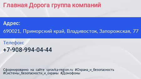 Главная Дорога, группа компаний по адресу 690021, Приморский край, Владивосток, Запорожская, 77 в дальнейшем Организация, размещена в следующих категориях: