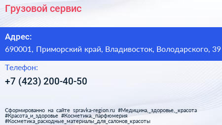 Грузовой сервис по адресу 690001, Приморский край, Владивосток, Володарского, 39 в дальнейшем Организация, размещена в следующих категориях: