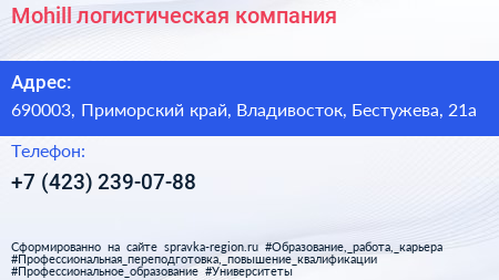 Mohill, логистическая компания по адресу 690003, Приморский край, Владивосток, Бестужева, 21а в дальнейшем Организация, размещена в следующих категориях: