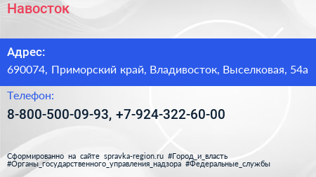 Навосток по адресу 690074, Приморский край, Владивосток, Выселковая, 54а в дальнейшем Организация, размещена в следующих категориях: