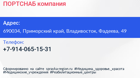 ПОРТСНАБ, компания по адресу 690034, Приморский край, Владивосток, Фадеева, 49 в дальнейшем Организация, размещена в следующих категориях: