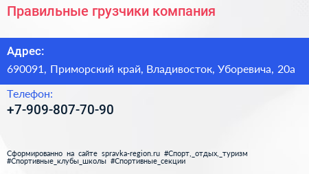 Правильные грузчики, компания по адресу 690091, Приморский край, Владивосток, Уборевича, 20а в дальнейшем Организация, размещена в следующих категориях:
