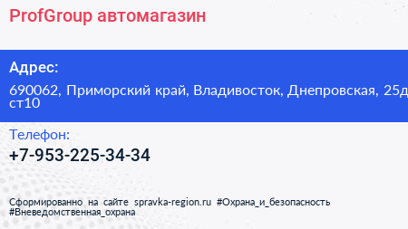 ProfGroup, автомагазин по адресу 690062, Приморский край, Владивосток, Днепровская, 25д ст10 в дальнейшем Организация, размещена в следующих категориях: