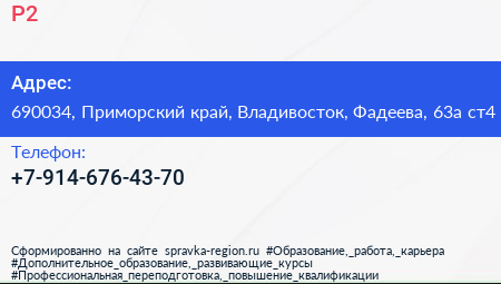 Р2 по адресу 690034, Приморский край, Владивосток, Фадеева, 63а ст4 в дальнейшем Организация, размещена в следующих категориях:
