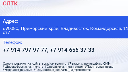 СЛТК по адресу 690080, Приморский край, Владивосток, Командорская, 11 ст7 в дальнейшем Организация, размещена в следующих категориях:
