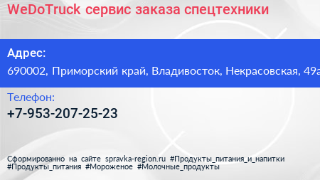 WeDoTruck, сервис заказа спецтехники по адресу 690002, Приморский край, Владивосток, Некрасовская, 49а в дальнейшем Организация, размещена в следующих категориях: