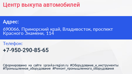 Центр выкупа автомобилей по адресу 690066, Приморский край, Владивосток, проспект Красного Знамени, 114 в дальнейшем Организация, размещена в следующих категориях: