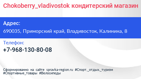Chokoberry_vladivostok, кондитерский магазин по адресу 690035, Приморский край, Владивосток, Калинина, 8 в дальнейшем Организация, размещена в следующих категориях: