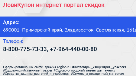 ЛовиКупон, интернет-портал скидок по адресу 690001, Приморский край, Владивосток, Светланская, 161а в дальнейшем Организация, размещена в следующих категориях: