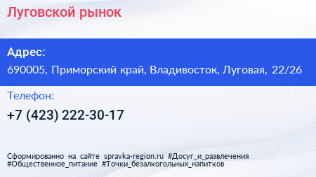 Луговской рынок по адресу 690005, Приморский край, Владивосток, Луговая, 22/26 в дальнейшем Организация, размещена в следующих категориях: