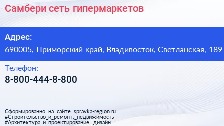 Самбери, сеть гипермаркетов по адресу 690005, Приморский край, Владивосток, Светланская, 189 в дальнейшем Организация, размещена в следующих категориях: