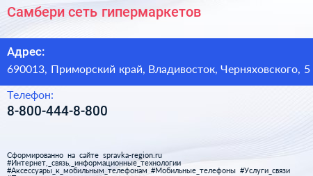 Самбери, сеть гипермаркетов по адресу 690013, Приморский край, Владивосток, Черняховского, 5 в дальнейшем Организация, размещена в следующих категориях: