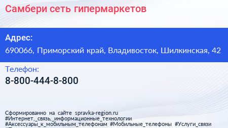 Самбери, сеть гипермаркетов по адресу 690066, Приморский край, Владивосток, Шилкинская, 42 в дальнейшем Организация, размещена в следующих категориях: