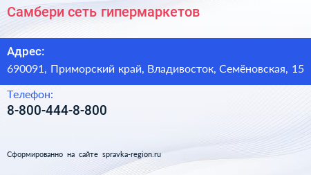 Самбери, сеть гипермаркетов по адресу 690091, Приморский край, Владивосток, Семёновская, 15 в дальнейшем Организация, размещена в следующих категориях: