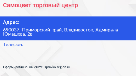 Самоцвет, торговый центр по адресу 690037, Приморский край, Владивосток, Адмирала Юмашева, 2в в дальнейшем Организация, размещена в следующих категориях: