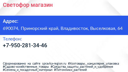Светофор, магазин по адресу 690074, Приморский край, Владивосток, Выселковая, 64 в дальнейшем Организация, размещена в следующих категориях: