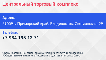 Центральный, торговый комплекс по адресу 690091, Приморский край, Владивосток, Светланская, 29 в дальнейшем Организация, размещена в следующих категориях: