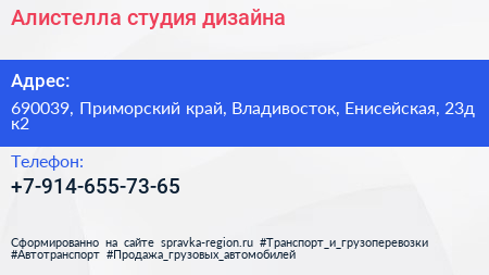 Алистелла, студия дизайна по адресу 690039, Приморский край, Владивосток, Енисейская, 23д к2 в дальнейшем Организация, размещена в следующих категориях: