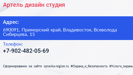 Артель, дизайн-студия по адресу 690091, Приморский край, Владивосток, Всеволода Сибирцева, 15 в дальнейшем Организация, размещена в следующих категориях: