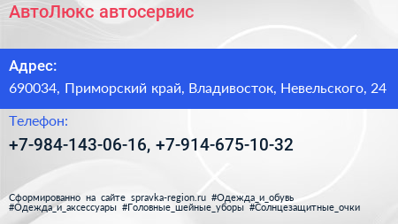 АвтоЛюкс, автосервис по адресу 690034, Приморский край, Владивосток, Невельского, 24 в дальнейшем Организация, размещена в следующих категориях: