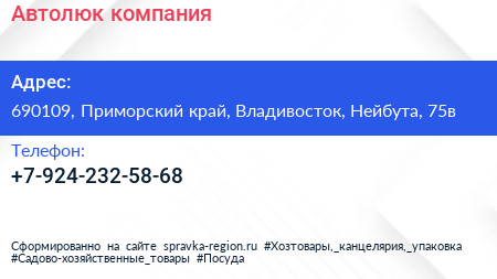 Автолюк, компания по адресу 690109, Приморский край, Владивосток, Нейбута, 75в в дальнейшем Организация, размещена в следующих категориях: