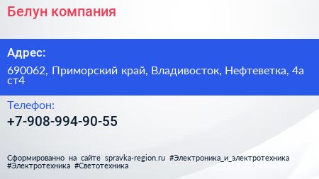 Белун, компания по адресу 690062, Приморский край, Владивосток, Нефтеветка, 4а ст4 в дальнейшем Организация, размещена в следующих категориях: