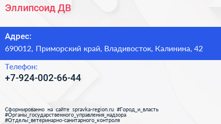 Эллипсоид ДВ по адресу 690012, Приморский край, Владивосток, Калинина, 42 в дальнейшем Организация, размещена в следующих категориях: