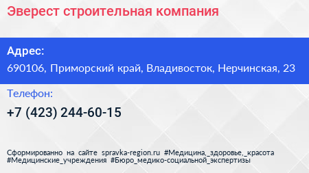 Эверест, строительная компания по адресу 690106, Приморский край, Владивосток, Нерчинская, 23 в дальнейшем Организация, размещена в следующих категориях: