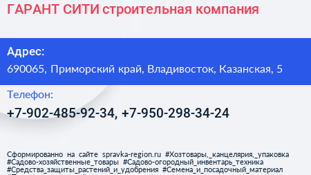 ГАРАНТ-СИТИ, строительная компания по адресу 690065, Приморский край, Владивосток, Казанская, 5 в дальнейшем Организация, размещена в следующих категориях:
