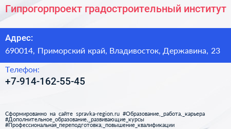 Гипрогорпроект, градостроительный институт по адресу 690014, Приморский край, Владивосток, Державина, 23 в дальнейшем Организация, размещена в следующих категориях: