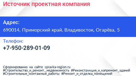 Источник, проектная компания по адресу 690014, Приморский край, Владивосток, Огарёва, 5 в дальнейшем Организация, размещена в следующих категориях: