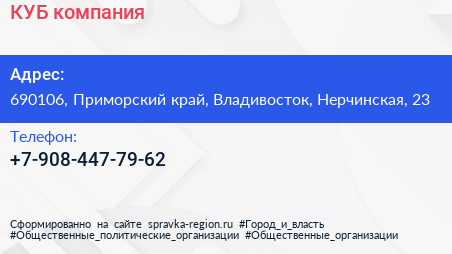 КУБ, компания по адресу 690106, Приморский край, Владивосток, Нерчинская, 23 в дальнейшем Организация, размещена в следующих категориях: