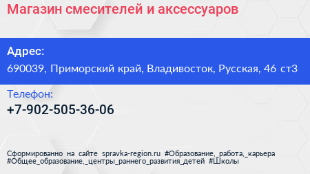 Магазин смесителей и аксессуаров по адресу 690039, Приморский край, Владивосток, Русская, 46 ст3 в дальнейшем Организация, размещена в следующих категориях:
