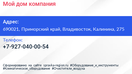 Мой дом, компания по адресу 690021, Приморский край, Владивосток, Калинина, 275 в дальнейшем Организация, размещена в следующих категориях: