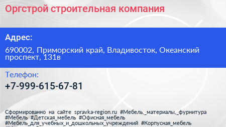 Оргстрой, строительная компания по адресу 690002, Приморский край, Владивосток, Океанский проспект, 131в в дальнейшем Организация, размещена в следующих категориях: