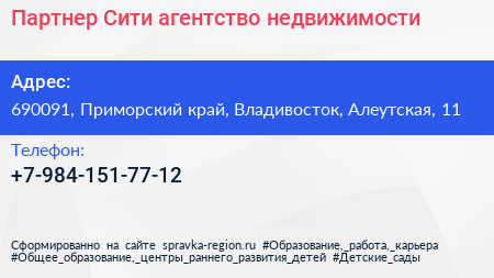 Партнер-Сити, агентство недвижимости по адресу 690091, Приморский край, Владивосток, Алеутская, 11 в дальнейшем Организация, размещена в следующих категориях: