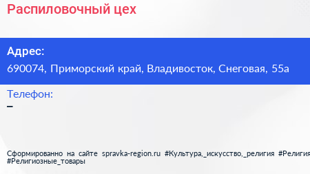 Распиловочный цех по адресу 690074, Приморский край, Владивосток, Снеговая, 55а в дальнейшем Организация, размещена в следующих категориях: