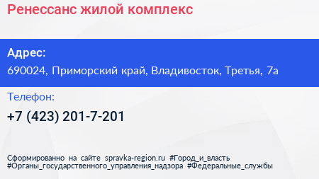 Ренессанс, жилой комплекс по адресу 690024, Приморский край, Владивосток, Третья, 7а в дальнейшем Организация, размещена в следующих категориях: